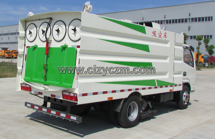 4、东风多利卡小型吸尘车采用大功率耐磨免维护离心风机,无噪音,效率高风量大,使用寿命长。